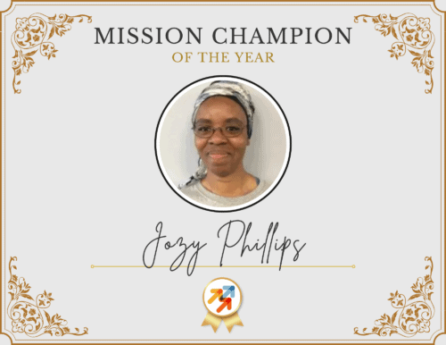 Congratulations to Joy Kelly. She is the recipient of our champion of the mission award.